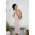 Różowa sukienka o eleganckim i zmysłowym kroju podkreślającym sylwetkę.
