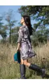 Efektowny wzór kwiatowy i dekolt w kształcie litery V sprawiają, że sukienka staje się niezwykle ciekawa. Zastosowana gumka w okolicy talii i możliwość jej regulowania dołączonym paskiem, pięknie podkreślą i wysmuklą sylwetkę. Fantastyczne rękawki nadają kreacji lekkości i zmysłowości. Sukienka Tina świetnie sprawdzi się w codziennych stylizacjach np. z botkami czy kozakami. W połączeniu z klasycznymi szpilkami będziemy prezentować się wyjątkowo, stylowo i modnie również podczas ważnych uroczystości.