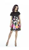 Czarna sukienka w róże o trapezowym, luźnym kroju z zaszewkami to oryginalny, autorski projekt polskiej marki KARTES-MODA. Sukienka z przodu ma dekolt w łódkę, natomiast na plecach - dekolt kwadratowy (nazywany również dekoltem karo) oraz krótki rękaw. Dzięki temu pozwala podkreślić piękną opaleniznę oraz dodać całej sylwetce lekkości i powabu. Niezwykle efektownym elementem tej kreacji jest kwiatowy print. Eleganckie róże w delikatnych kolorach świetnie komponują się z każdym typem urody i jednocześnie stanowią wzór, który nie poddaje się presji mijającego czasu. Mając na sobie sukienkę w róże możesz więc za każdym razem wyglądać stylowo i modnie.