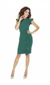Zielona mini sukienka z falbaną na wesele świetnie prezentuje się zarówno w tańcu. Mocno dopasowany krój podkreśla atuty sylwetki i pozwala je wyraźnie wyeksponować. Klasyczna długość mini umożliwia podkreślenie nóg, marszczenie w pasie maskuje ewentualne problemy w tym rejonie ciała, a falbaniaste mini rękawki optycznie poszerzą ramiona, dzięki czemu Twoja talia wyda się smuklejsza. Przyjemny w dotyku materiał przylega do ciała, jednak nie podrażnia skóry. Przy wyborze odpowiedniego rozmiaru sprawdź dokładnie tabelę rozmiarową, ponieważ w przypadku tak dopasowanych sukienek jest to bardzo ważne.